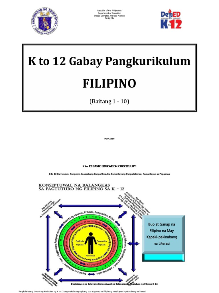 K to 12 Filipino Gabay Pangkurikulum Disyembre 2013 Pahina 5 ng 141 f K to 12 BASIC EDUCATION CURRICULUM BAITANG 1 Nagagamit ang wikang Filipino upang madaling maunawaan at maipaliwanag ang mga kaalaman sa araling pangnilalaman magamit PAMANTAYAN NG PROGRAMA ang angkop at wastong salita sa pagpapahayag ng sariling. K Bigyang-pansin buod Dekada 70 ang ginamit na mga panandang Pagbibigay ng input ng pandiskurso na guro tungkol sa mga pang. Gabay sa-guro baitang-7-ikaapat-na-markahan_08152012 from Marco Med.